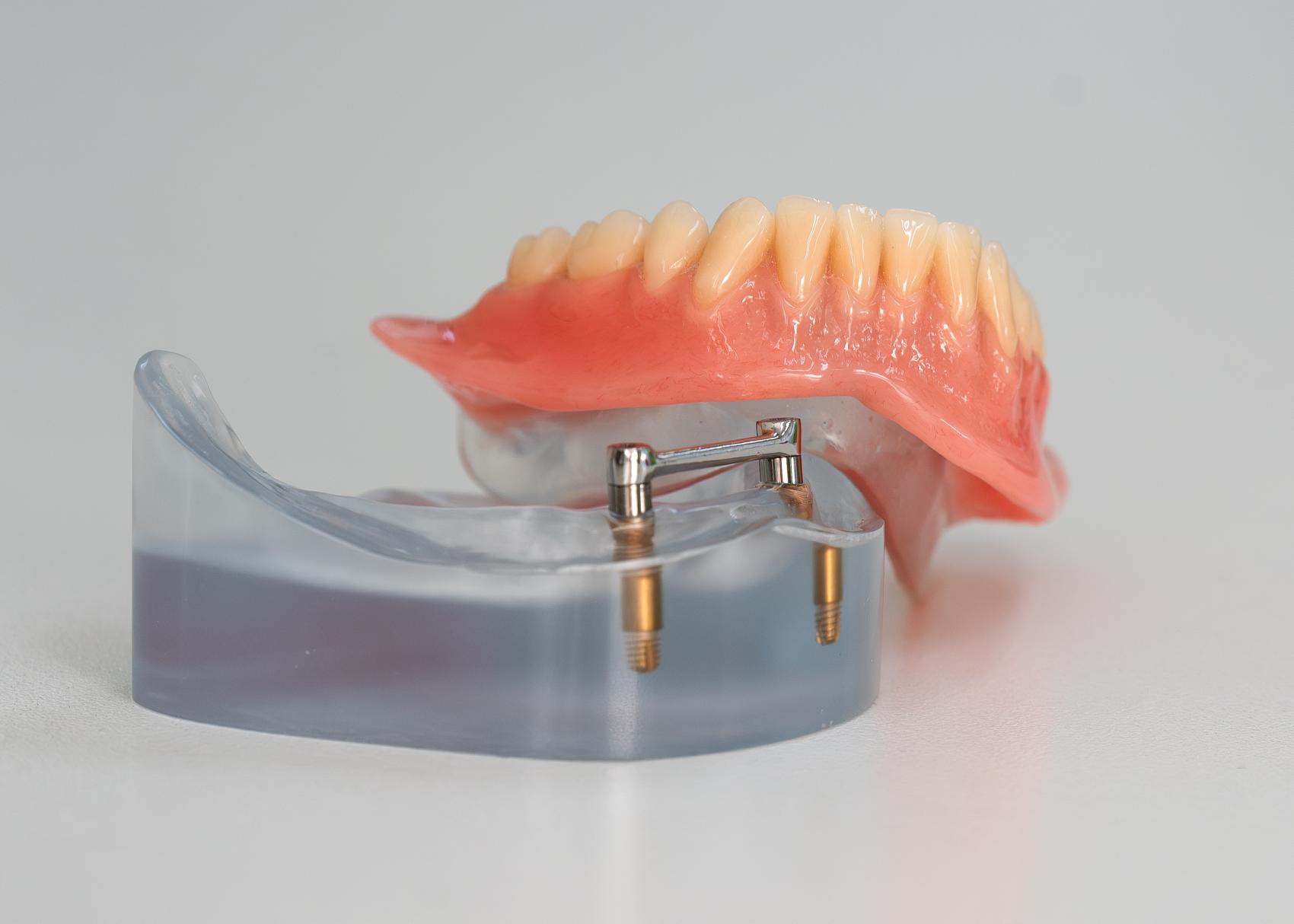 De Implantaat prothese, ofwel kortweg het klikgebit genoemd, heet officieel de implantaat gedragen overkappingsprothese. Een klikgebit is in de meeste gevallen een volledige prothese die vastklikt op een drukknopje of op een staafje. Dit drukknopje of staafje zit zelf weer vastgedraaid op een implantaat. Een implantaat is een kunstwortel die wordt geïmplanteerd in de kaak door een implantoloog of kaakchirurg met de bedoeling de kunstmatige tanden op zijn plaats te houden. Dus wanneer een gewoon kunstgebit niet meer volstaat kan er worden gekozen voor een klikgebit, dit is zowel esthetisch en functioneel gezien een goede oplossing. Normaal gesproken worden in de onderkaak 2 implantaten en in de bovenkaak 4 implantaten geplaatst.